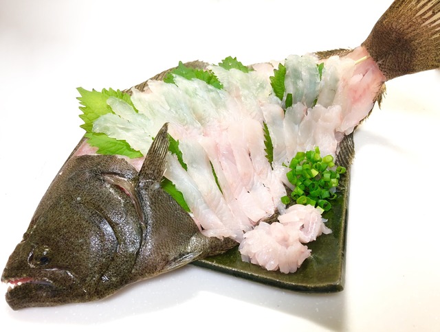ヒラメは身体の左側を上にして生活しています。(カレイとは真逆)カレイに比べて口が大きく、鋭い歯が生えています。刺身・揚げ物・煮物・ムニエルなどなんでもおいしくいただけます。